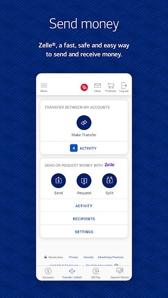 • Securely send and receive money with Zelle® using a U.S. mobile number or email address¹