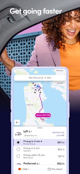 Choose from Wait & Save, Priority Pickup, Bikes & Scooters, Lyft XL, Lyft Lux, Transit, or even Rentals.